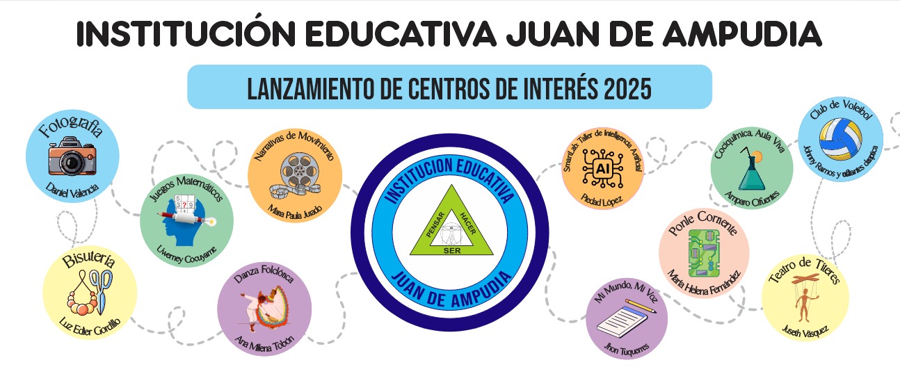 En la Institución Educativa Juan de Ampudia damos inicio a los Centros de Interés 2025, espacios creativos y formativos donde nuestros estudiantes exploran sus talentos, fortalecen valores y construyen comunidad. ¡Una invitación a aprender con emoción y propósito!